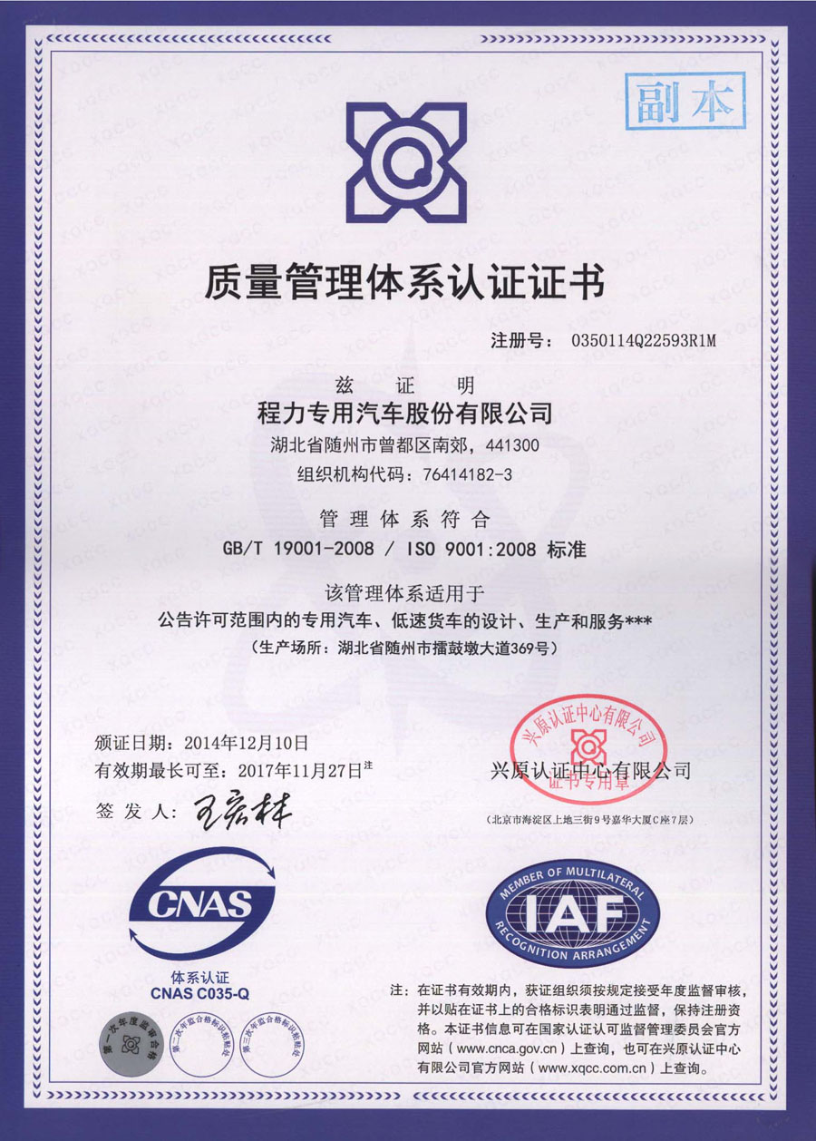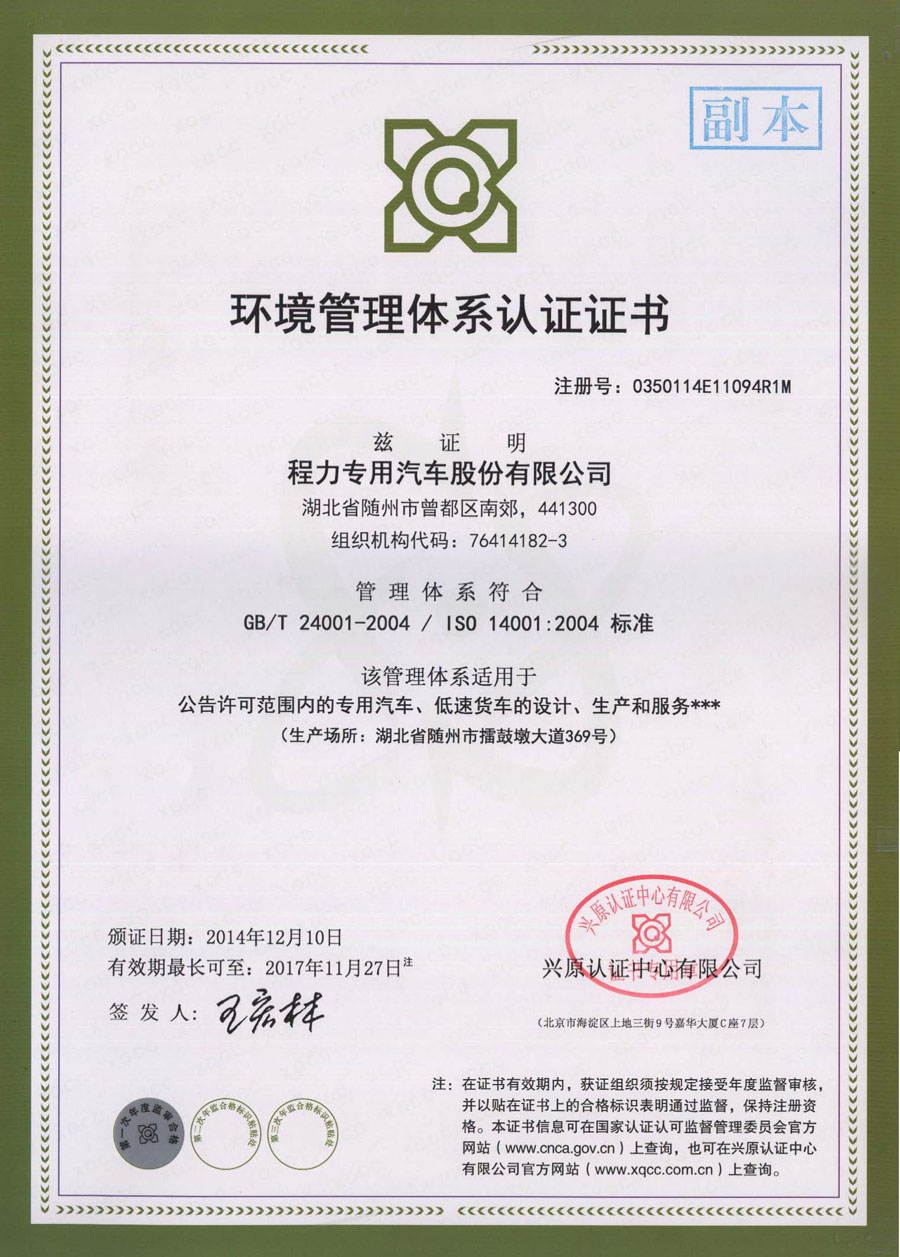 生產各類專用汽車的專業廠家,大型專用汽車制造廠。國內園林綠化、石油化工、市政環衛、壓力容器專用汽車制造商。注冊商標“程力威”牌,國家產品代碼:“CLW”。東風、解放公司的重要合作伙伴,主要從事各類專用汽車的生產制造業務,同時也銷售各大型廠家的整車及配件。公司擁有自行出口權,產品占據大量國外市場,其主導品種有灑水車、油罐車、垃圾車、吸糞車、吸污車、自卸車、廂式貨車、半掛車、清障車、隨車吊、高空作業車、教練車、散裝水泥車、化工車、消防車、汽車配件、水泥攪拌車、牽引車等八大系列100多個品種車型。同時批發東風、解放、楚風各種二類底盤。