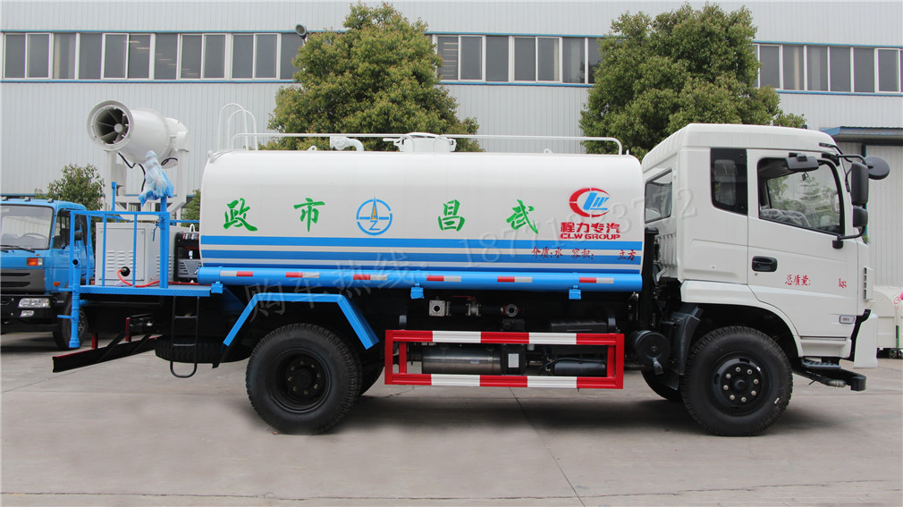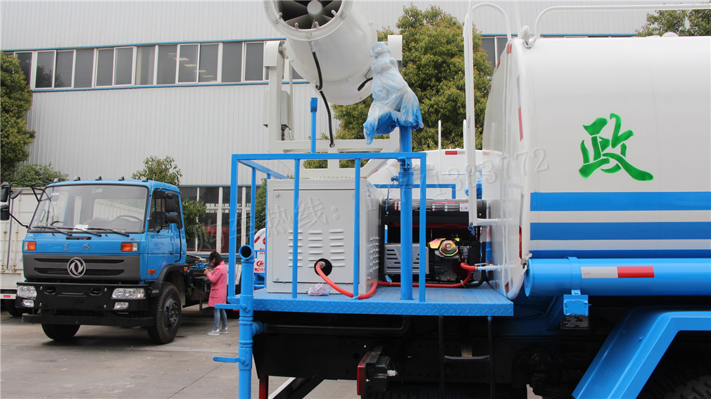 霧炮灑水車,又稱為多功能綠化灑水車。用于城市道路、大型廠區(qū)、部隊、園林等單位清潔路面、衛(wèi)生、防塵、澆水、噴灑農(nóng)藥等,以達到美化環(huán)境的作用。該車加裝風(fēng)送式噴霧機組,可用于工地降塵,農(nóng)場打藥等。灑水車由以下幾部分組成:專用車底盤、罐體、管道系統(tǒng)、操作系統(tǒng)。
