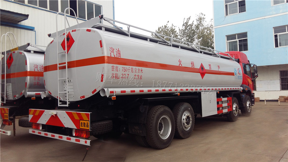 該車適用于危險品運輸,運輸介質:柴油,汽油,煤油,介質密度分別為:0.83噸/立方米, 0.75噸/立方米, 0.80噸/立方米,類項號:3;罐體有效容積:22.7立方米, 罐體外形尺寸(長×長軸×短軸)(mm)為:8400×2450×1560。防護材料:Q235A碳鋼,連接方式:左右側面及后部防護均采用焊接連接,后部防護斷面尺(mm):120×50, 后部防護離地高度(mm):520。僅采用底盤子午線輪胎和帶ABS的底盤,該車前輪安裝盤式制動器,前置排氣管,裝配限速裝置,限速80km/h。安裝帶有衛星定 |