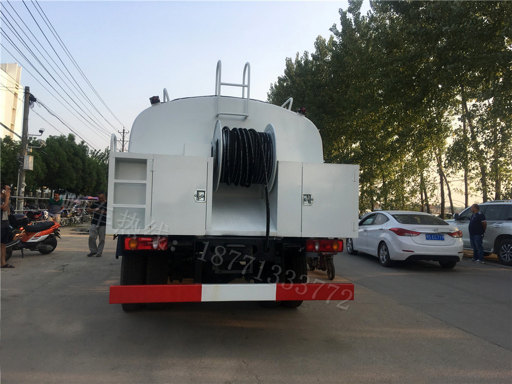 隨底盤選裝駕駛室。該車通過取力器帶動高壓泵工作,高壓泵將普通的水轉化為高壓低流速的水,然后輸送到高壓管路,使其以一定的能量到達高壓噴嘴進行清洗工作.罐體有效容積8.19立方米,罐體外形尺寸(長度×長軸×短軸)(mm):3800(罐體實際總長5000,其中1200用于安裝附件類)×2200×1380.介質名稱:水,介質密度:1000千克/立方米.可選裝前噴水裝置,不裝前噴水裝置時整車長為:8050mm。選裝前部噴水裝置時,整車長度為(mm):9000,前伸為(mm):950,整車長/軸距/后懸對應關系為(m |